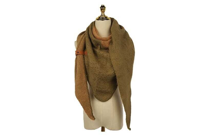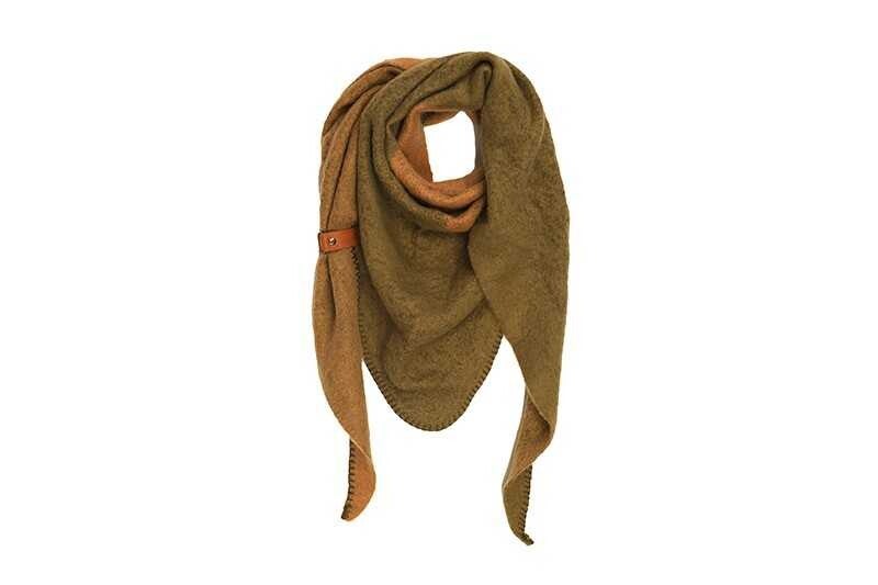 De "Navis" sjaal omhult je in zachtheid dankzij zijn luxueuze materiaalkeuze en biedt de ultieme warmte en comfort tijdens de koude maanden. De sjaal straalt in warme kleuren die perfect samengaan met het koude seizoen, waardoor je stijlvol en behaaglijk blijft, ongeacht het weer. Met het veganistische leren bandje is de sjaal makkelijk in model te brengen.